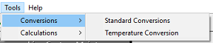 The tools menu has a few helpful interfaces for converting and calculating values. Standard Conversions: A calculator for converting units of measure from one type to another. A number of different categories and units are represented. Temperature Conversion: Convert temperature from Celsius to Fahrenheit and vice versa. Area Calculation: Area calculations for various 2D shape types. Volume Calculation: Volume calculations for various 3D shape types. Wetbulb Calculation: Calculate wetbulb temperature from temperature and humidity you input. |