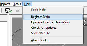 If you plan on upgrading to a paid version and subscription for Scolo to increase the object license countsyou must first register your installation. You must register each installation of the program on all computers that have Scolo installed in order to have the counts increased. Registration will only need to be done once on each computer the software is installed on. The registration process is machine specific and does not need to be done for each user account on that workstation. There is no harm in registering more than one time. NOTE: The registration and licensing upgrade process uses a HTTP connection over the internet to our registration and licensing system. Therefore the workstation you are registering must have access to the internet, at least during this process. To access the registration function go the main menu item for ‘Help – Register Scolo’.