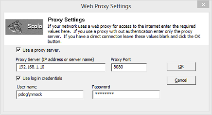 Below are descriptions of the options used in this control. Use a proxy server If your workstation has a direct connection to the internet leave this unchecked and no other values need to be set. If you use a proxy server to access the internet then this box should be checked. Depending on your proxy server setting other values need to be set. Proxy Server The proxy server name or IP address that your network uses. Proxy Port The port number that your proxy server uses for connections. If your proxy server uses authentication for access to the internet the following values need to be set. If you do not use authentication leave these options unchecked and blank. Use login credentials Check this box if you wish the application use your login credentials that you used to log into your workstation with. Using this option, you cannot specify a different user name and password from the ones you have logged into the computer to authenticate with the proxy server. User name The user name to authenticate your access with the proxy server. Password The password to use with the specified user name to authenticate your access with the proxy server. When all the correct values have been set, select the ‘OK’ button to register the software. A message will be displayed stating the process was successful or if it had failed. If you get an error/failure message, click here for troubleshooting help. |