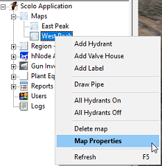 Only users with Administrator, System Manager or System Configurator permissions are able to create and modify maps. The controls to edit an existing map properties are all the same as creating a new map. Their descriptions can be reviewed here. The only difference is how to get to the Map Properties command. Right click on an exist map in the navigation screen and select the Map Properties command. |