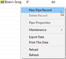 There are two ways to add a new pipe record to your Scolo project. Either of the following will work to open the window for creating the pipe record. You need to have Administrator, System Manager or System Configurator privileges to use these commands.