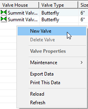 There are two ways to add a new valve record to your Scolo project. Either of the following will work to open the window for creating the record. You need to have Administrator, System Manager or System Configurator privileges to use these commands.